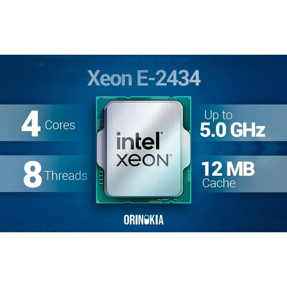 • Intel Xeon E-2434 (4 cores / 8 threads, up to 5.0GHz turbo, 8MB cache)